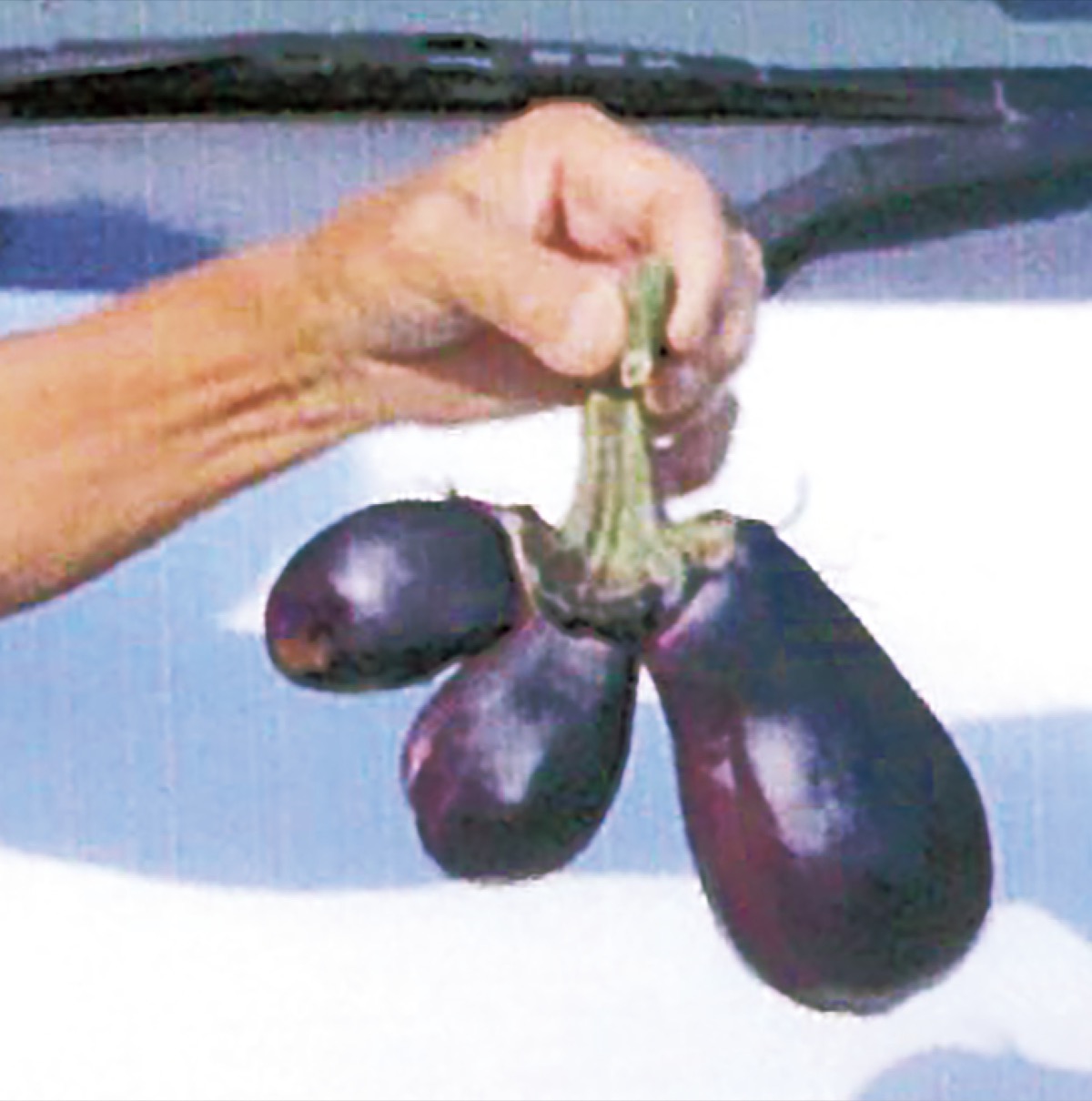 3つ並んだ親子ナス 上柚木 飯沼さんが収穫 八王子 タウンニュース