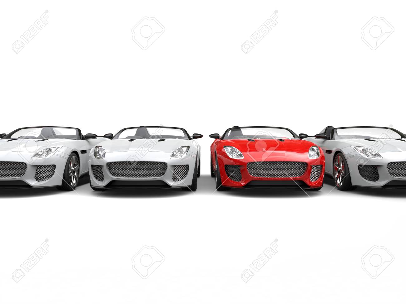 白いスポーツカーの行にシャイニー新しい赤いスポーツカー立って の写真素材 画像素材 Image